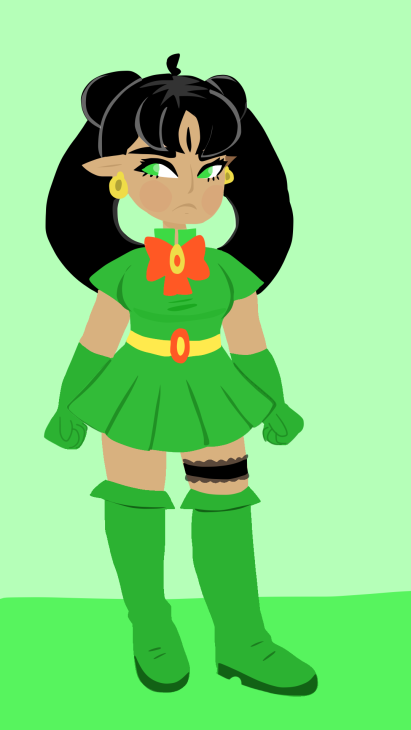 Loopy’s true form is half snake, half woman, but she chooses to stay in “Super Heroine Loopy mode,” as she calls it, most of the time, which appears mostly human. Opening her third eye partially unlocks her six-armed serpent demon form, and opening it all the way transforms her into a massive three-headed serpent: the “Great Destroyer.” In this mode she’s unstoppable, the strongest of all the immortals, but she has no control over her actions and obliterates everything in her path. Eula forbids her from using her Great Destroyer form in battle, but Loopy hates to lose, and unleashes her full power whenever she faces defeat.