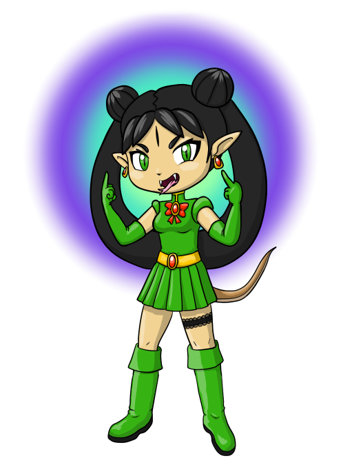 When Loopy was born, she hatched from an egg in a grotto deep beneath a human monks’ temple. The monks raised Loopy, and tried to teach her the ways of peace and enlightenment. Loopy eagerly absorbed their teachings, and just as eagerly broke every tenet of their faith. Though she hates it, Loopy often meditates when she feels frustrated or anxious, seeking the inner peace the monks preach about. Somehow, in spite of her violation of their rules, Loopy has managed to open her third eye, granting great powers of transformation.