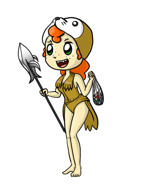 Biana wields a legendary spear, the Flying Fish, which she uses to fly around and surf the waves. She spends most of her time in the water, often in seal form, and can be easily identified because all the seals of her species are extinct. Over the course of several decades, she hunted to extinction the sharks and killer whales in the ocean surrounding her Locus.